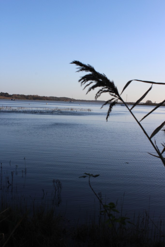 And then, down past the foot ferry and the wild swimmers it all opens up – the great windy marsh-weave of river and saltwater, island and marshland, blue of the sky rippling in water, shining mud, and the hiss of rushes in the north wind